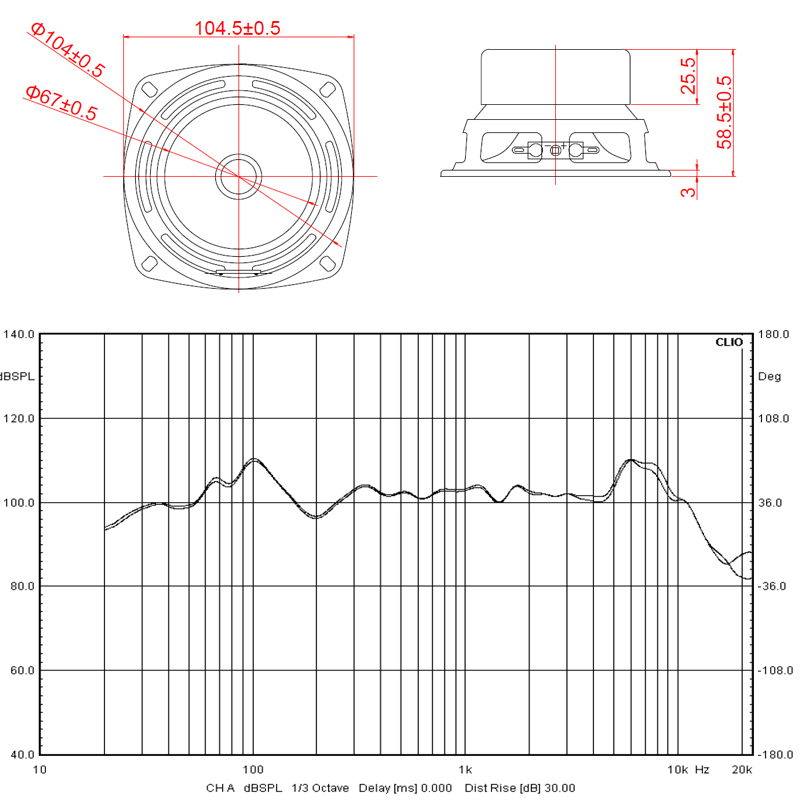 102.5 ± 3db/1 Watt.1Meter.Average at800,1000,1200,1500HZ.