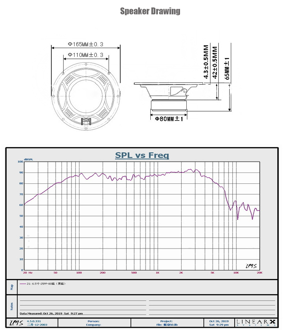 6,5 duim hoë krag luidspreker 30 watt 8 ohm klankbestuurder luidspreker