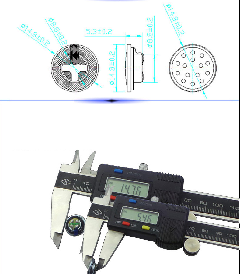 Altavoz Mylar de 15 mm de frecuencia completa para auriculares Altavoz de 32 ohmios y 0,02 vatios