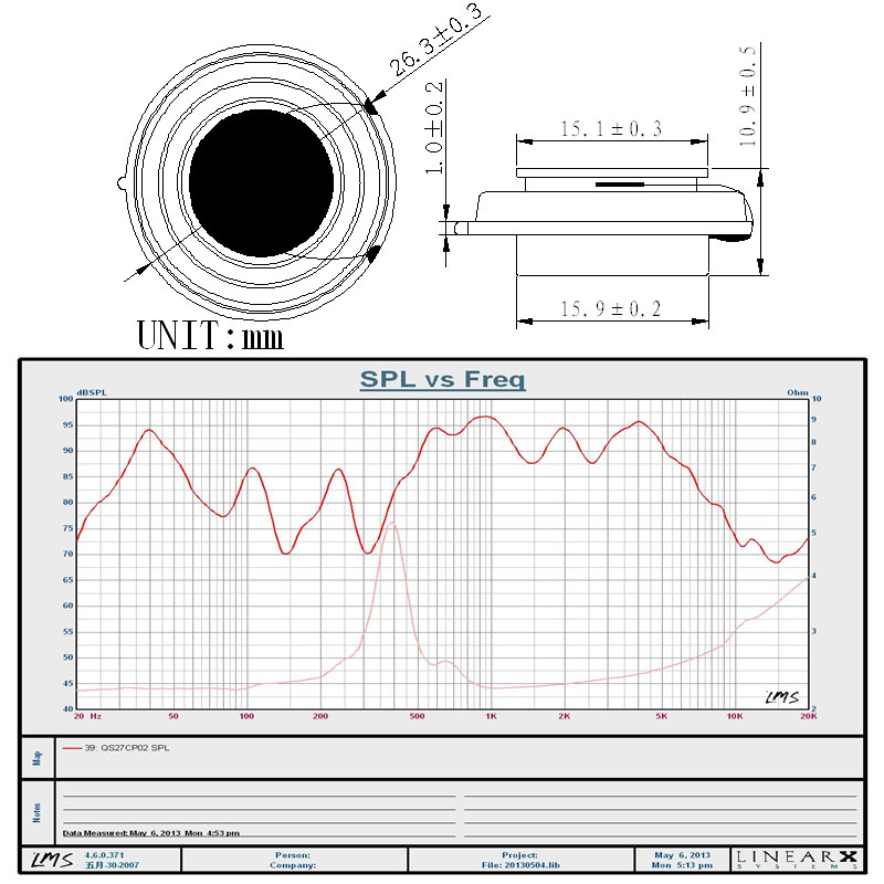 Mini Loudspeaker unit 44mm 4ohm 15 watt exciter