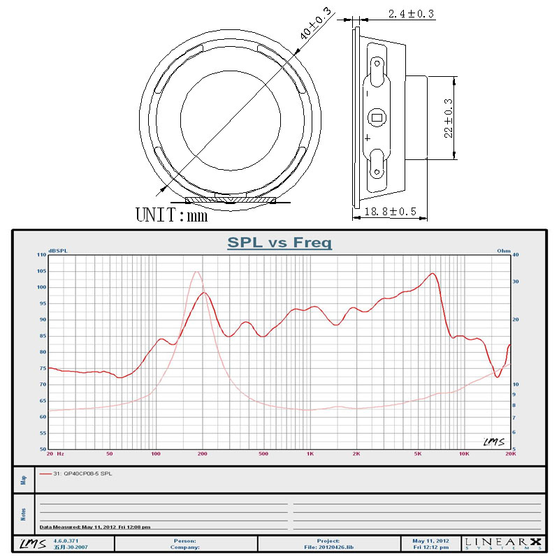F0-12KHZ, औसत स्प्ल ± 10db